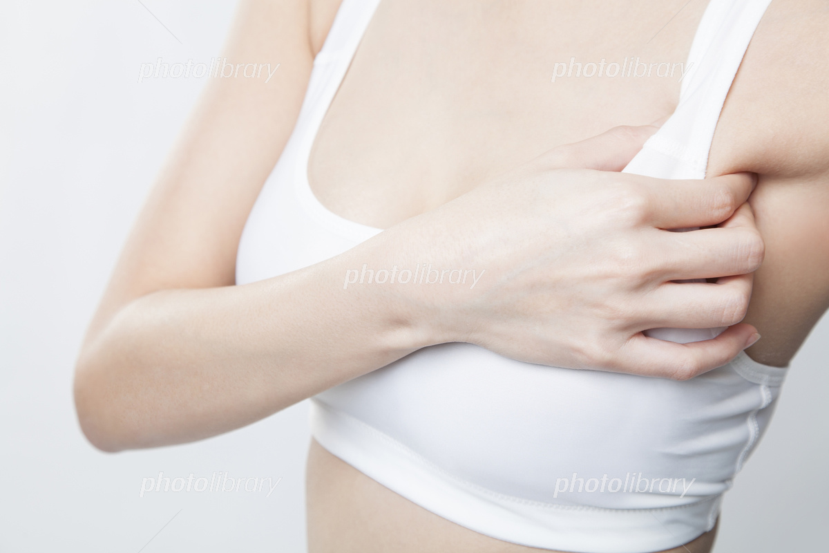 - 次に、片方のバストを手のひらで包み込むように持ち、下から上へ、そして中心に向かって優しく引き上げます。これを数回繰り返します。